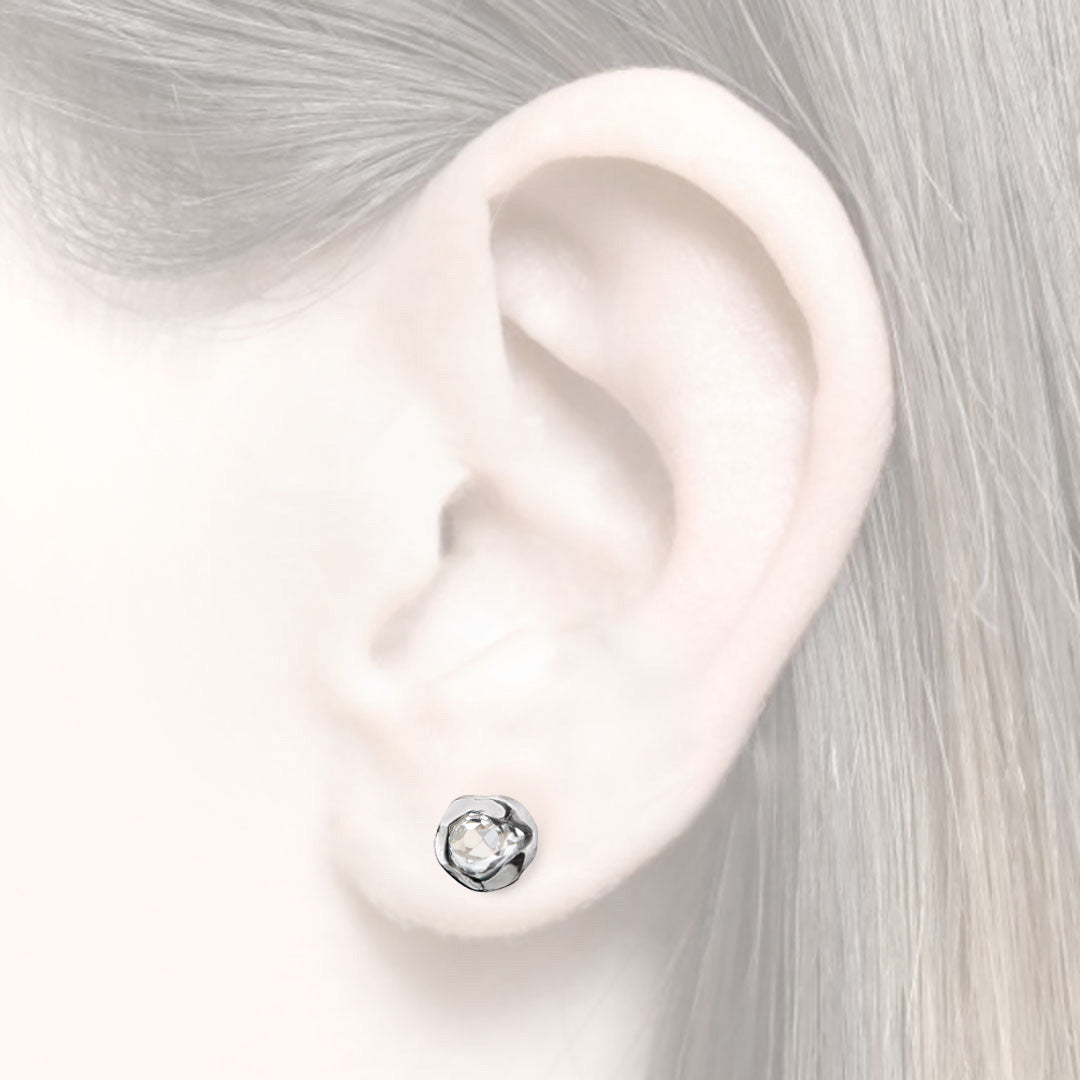 Dieser kleine Ohrstecker passend zum gleichnamigen Kettenanhänger aus der Kollektion 'Sweet little things' hat ein klassisches Design. Die Fassung ist in einem einzigartigen Stil unregelmäßig heraus gearbeitet und mit einem kleinen Riss versehen, der auf einer Seite den Blick auf den 5mm großen Edelstein freigibt.