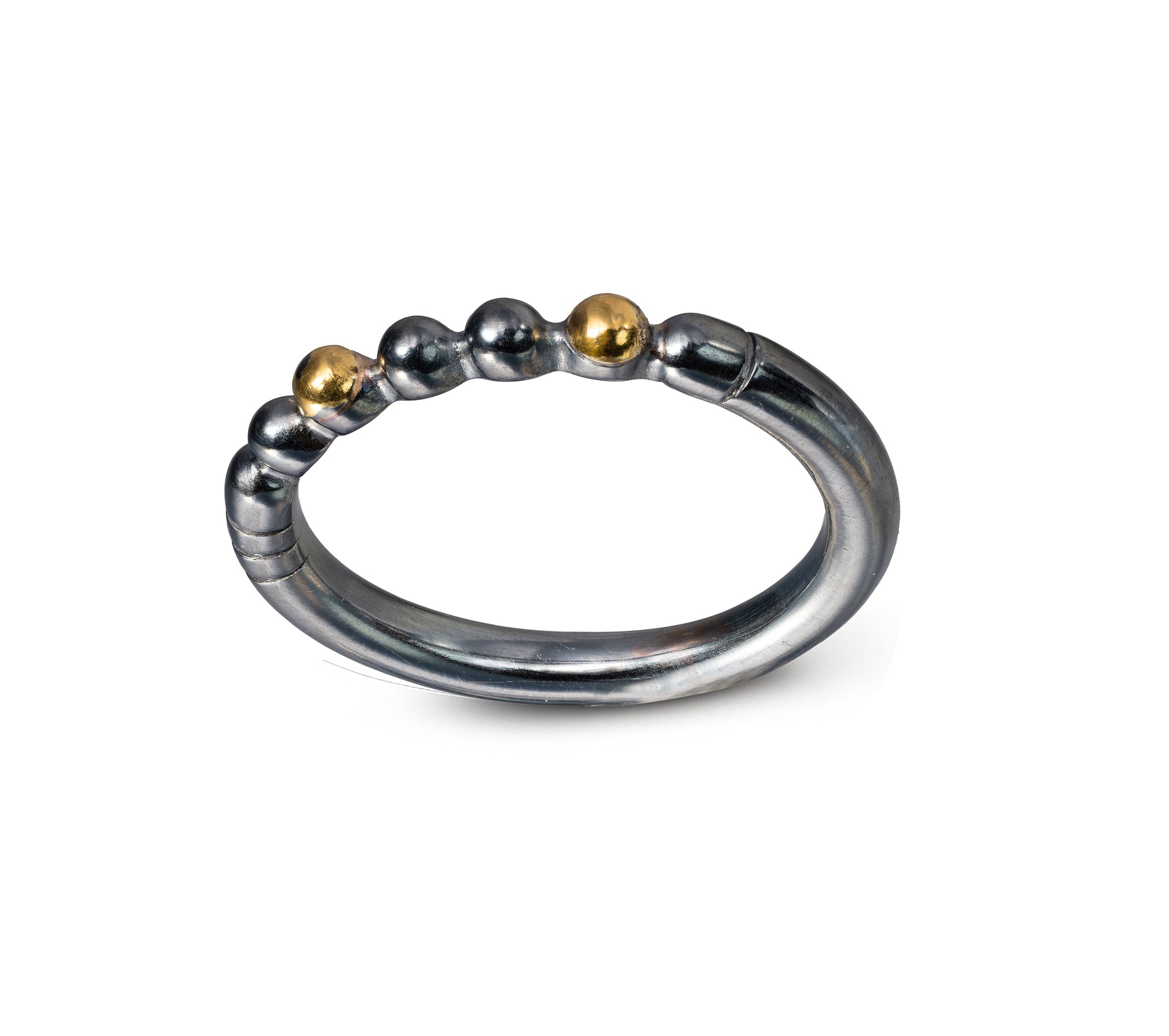 This narrow men's ring impresses with its simple but effective idea. It looks like an improvisation. A metal strip is simply tied to a ring. Simple and brilliant.