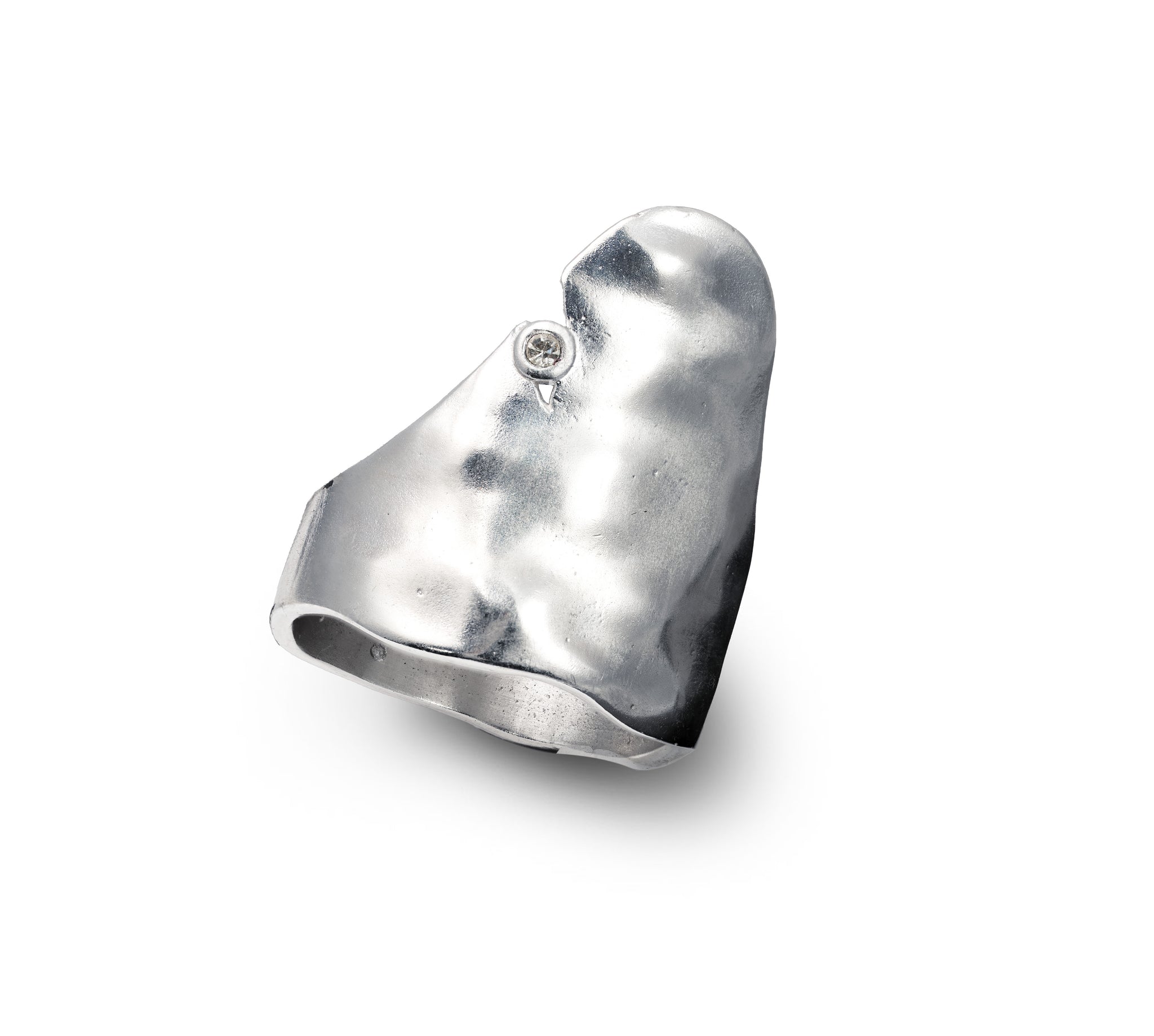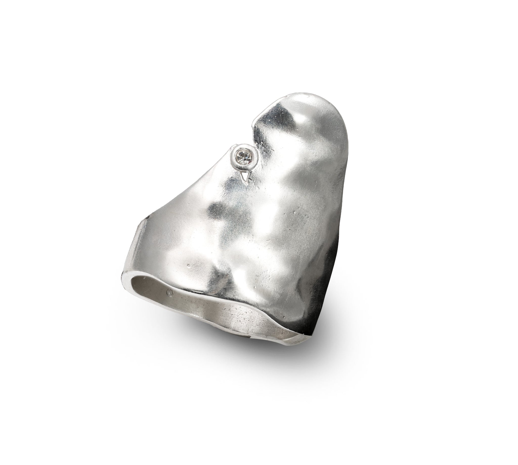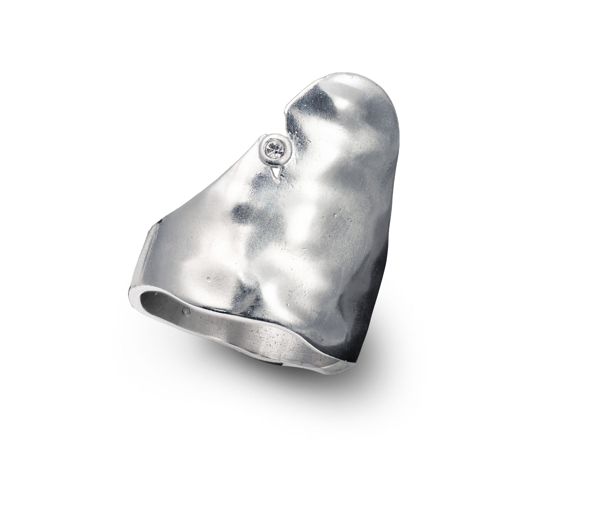 Der Wickelring mit Schiffchen ist, wie schon sein Name verrät, ein Ring der sich eigenwillig um den Finger wickelt. Er ist vergleichbar mit dem "Twistring", doch in seiner Art lebendiger und fließender. Besonders außergewöhnlich ist das kleine Schiffchen, welches eingebettet ist in die gewundene Form des Ringes - der Eindruck einer zierlichen Pflanze mit sich öffnendem Blatt entsteht, ein Blatt auf dessen Rand eine weiße Zirkonia funkelt wie ein kleiner Tautropfen. Passend zu den Ringen hat Dietmar Fröhlich die charmanten Ohrringe "Earrings Forage cup" kreiert, bei denen die Aufmerksamkeit ganz besonders auf das kleine Schiffchen gelenkt wird.